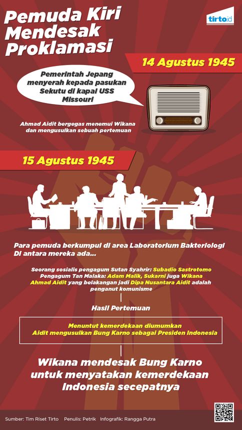 Sebaliknya golongan muda menginginkan proklamasi segera dilakukan dan tidak rela kemerdekaan sebagai hadiah dari jepang. Wib soekarno dan hatta dibawa ke rengasdengklok karawang untuk kemudian didesak agar mempercepat proklamasi kemerdekaan republik. Berikut ini adalah tokoh tokoh yang terlibat pada peristiwa rengasdengklok lengkap beserta dengan fotonya. Buku karangan sidik kertapati tokoh pemuda yang terlibat dalam persiapan proklamasi kemerdekaan dan perlawanan bawah tanah pada masa pendudukan jepang itu merupakan.