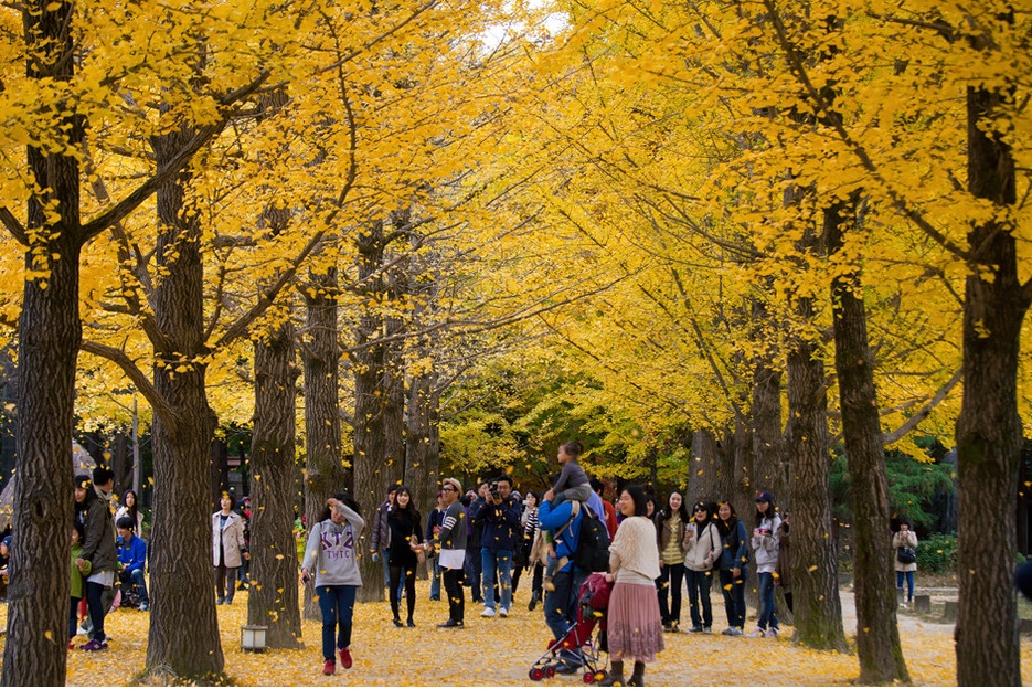 Pemandangan juga cantik kekuningan dengan keindahan daun daun gugur macam carpet di lantai. Selain musim bunga musim luruh di korea juga musim yang sesuai bersiar siar kerana cuaca yang baik dan cerah juga tidak panas dan tidak terlalu sejuk. Musim gugur di korea dimulai pada bulan september hingga bulan novemberudara di musim gugur dingin juga kering dan langit biru dengan sedikit awan. Orang korea menyebut musim gugur dengan sebutan cheon go mabiistilah cheongomabi ertinya adalah langit tinggi dan kuda yang menjadi gemukistilah cheongomabi banyak mengambarkan musim gugur.