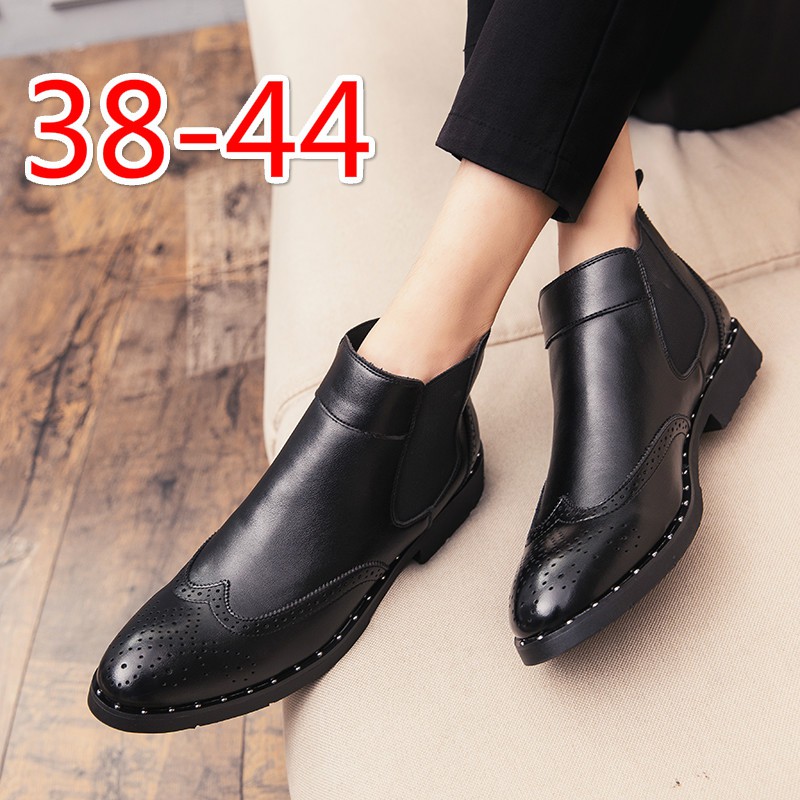 J M H Fashion Chelsea Boots For Men In Formal Occasion Premium Leather Low Heel Mix Brogue Toe Shoes Handbags B075jdt9fb