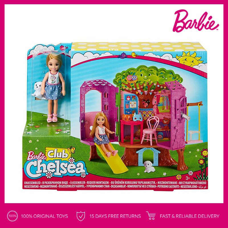 Join the club with chelsea dolls playhouse chelsea doll and her teddy bear two stories with a kitchen and lots of play space make the house a perfect getaway for young imaginations let your story travel between floors in working elevators place chelsea doll on the platform and her bear in the basket and move the platform. As it carries chelsea doll up the basket holding teddy goes down. This barbie playhouse features two stories and abundant play space to make the house the perfect setting for young imaginations to come alive and explore. Barbie club chelsea doll and playhouse.