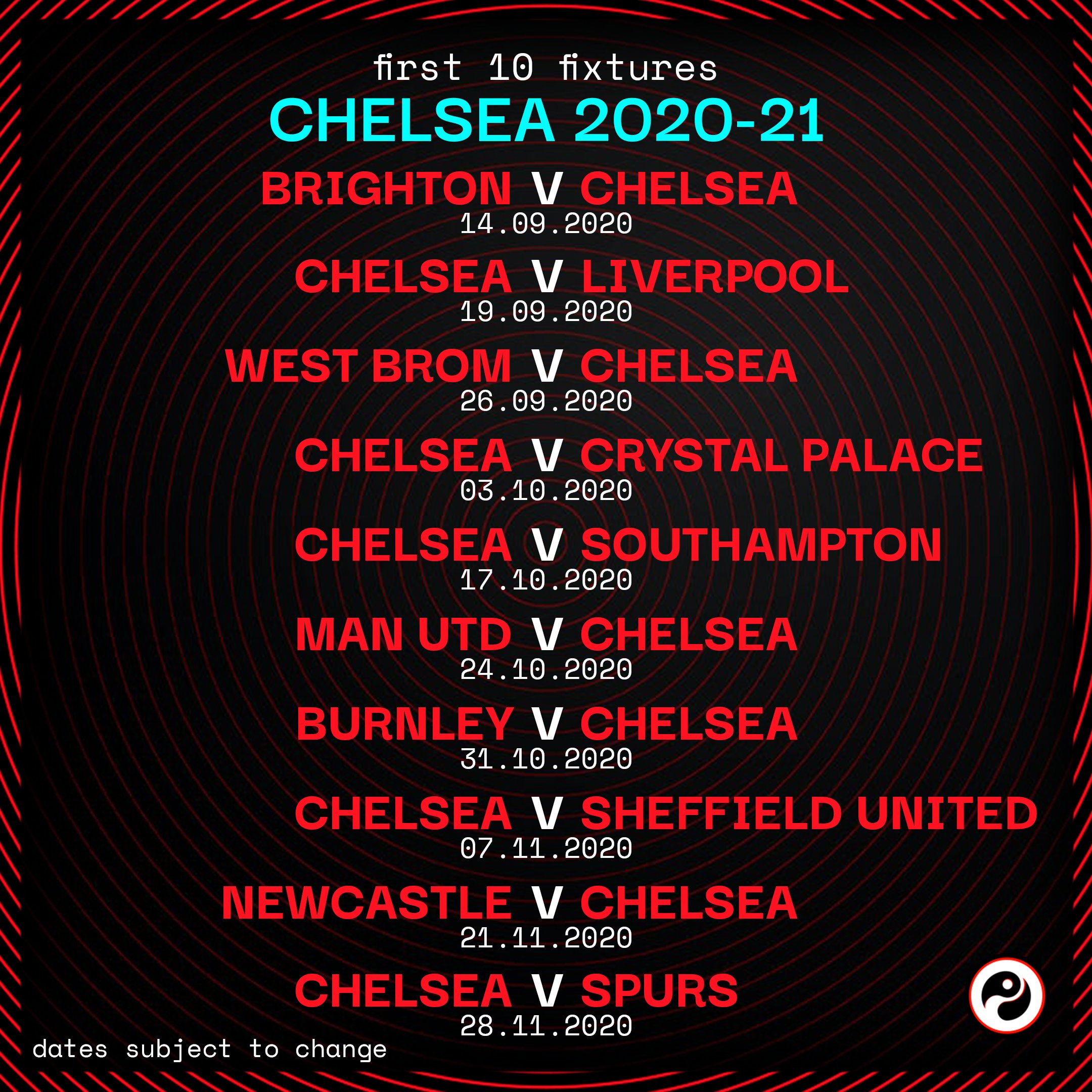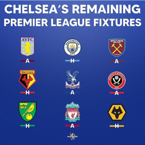 Chelsea epl fixture. Here are chelseas premier league matches in the fall and spring 20192020. Visit espn to view chelsea fixtures with kick off times and tv coverage from all competitions. Chelsea will need to make the most of playing bottom of the table norwich city at the bridge. Liverpool a normally one of the toughest fixtures of the season but chelsea could be aided by circumstances.