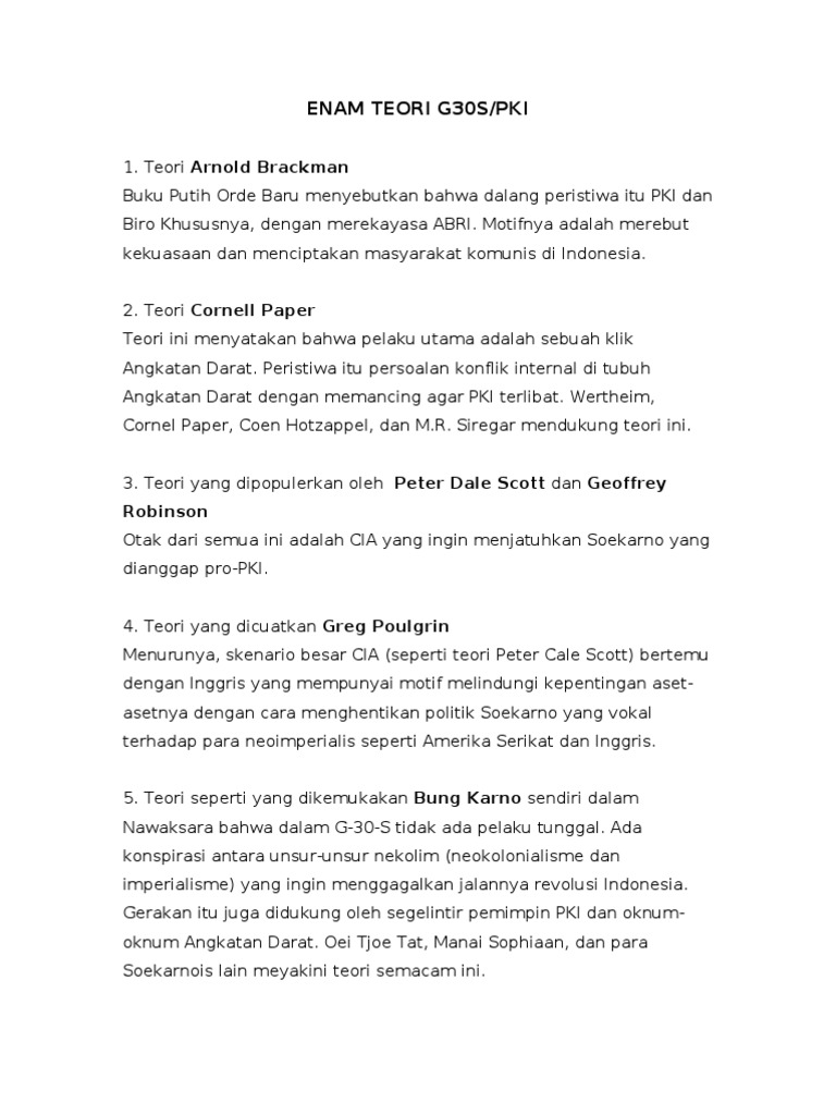 Tragedi berdarah peristiwa 30 september 1965 atau disingkat g30spki itu menyisakan misteri yang selalu menarik dibicarakan hingga saat ini. 25 march 2015 by gandi garindra hingga akhir kekuasaan rezim soeharto semua orang percaya bahwa semua itu adalah perbuatan yang diotaki oleh partai komunis indonesia pki dan di pelajaran sejarah pun di catatkan kronologi menurut kepentingan penguasa saat itu. Apakah pki cia soeharto atau soekarno selama orde baru peristiwa ini selalu ditulis dengan g30spki yang merujuk pada doktrin bahwa satu. At bro ts baka ijin komen ye.