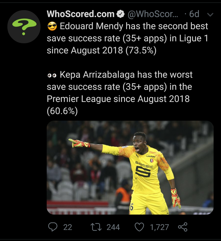 On Twitter Edouard Mendy Is 6 7 And Has More Than 76 Save Percentage In The Last Three Seasons He Has Among The Best Cross Collection Stats In Europe S Top Five Leagues