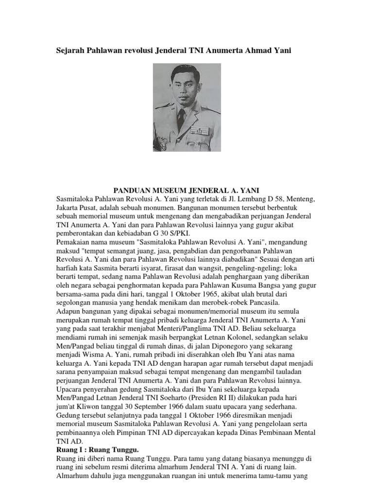 Jenderal Tni Anumerta Ahmad Yani Konsisten Berani Dan Mencerdaskan