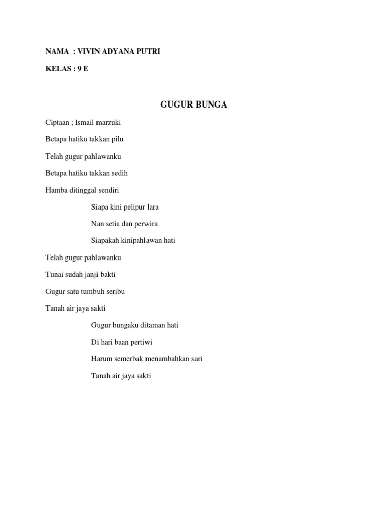 Lirik gugur bunga dengan background bendera merah putih lirik video ini kami buat sebagai rasa cinta. Ismail marzuki shanna shannon lirik. Himne siswa husein mutahar 11. Lirik lagu syukur ciptaan.