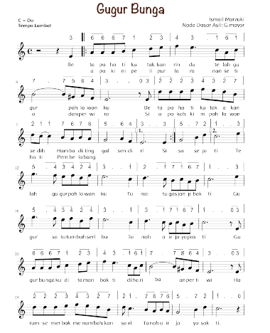 Tutorial notasi angka lagu wajib nasional nada lagu gugur bunga dilengkapi dengan doremi solmisasi. Not angka gugur bunga ciptaan ismail marzuki. Betapa hatiku takkan pilu. Lirik lagu daerah di 34 provinsi di indonesia kumpulan lagu wajib nasional.