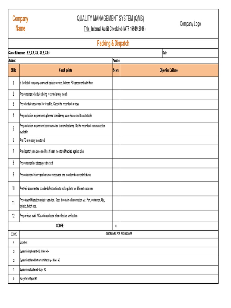 Iso 9001 Internal Audit Checklist