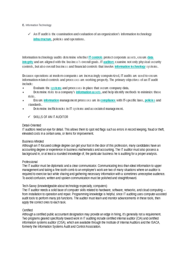 Infrastructure E Information Technology Audit Internal Audit