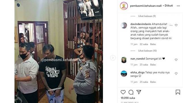 Di hari pertama penahanan pria bernama i gede ari astina itu langsung dijenguk istrinya.