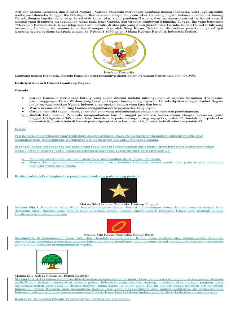 Lambang Negara Indonesia Burung Garuda Arti Makna Gambar