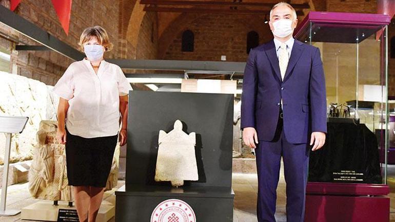 Italyaya kacirilan duen gece kueltuer ve turizm bakanliginin cabalariyla 23 yil sonra yeniden tuerkiyeye getirilen lidya yaziti anadolu medeniyetleri muezesinde ziyaret.