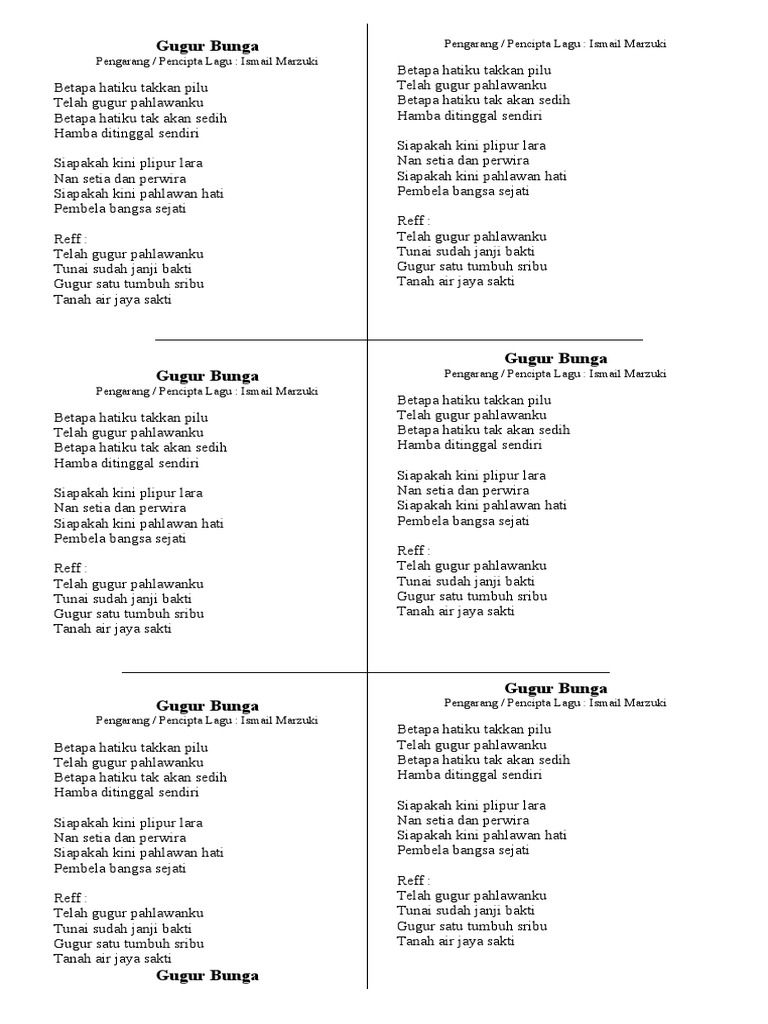 Not Angka Lagu Gugur Bunga Ismail Marjuki