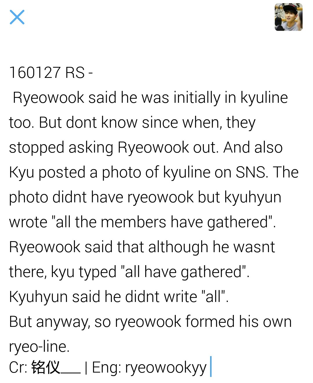 Super juniors ryeowook revealed that he created his own ryeo line as a counterpart to the infamous kyu line on the january 27 episode of radio star kim gu ra starts off by. One of the most famous k pop idol cliques is the kyu line which consists of super juniors kyuhyun and ryeowook shinees minho tvxqs changmin and cnblues jonghyun. All rights belong to their respective owners. Nevertheless ryeowook isnt one to show a lack of skill in his ear training by being able to improvise even if tentatively when given the chance to.