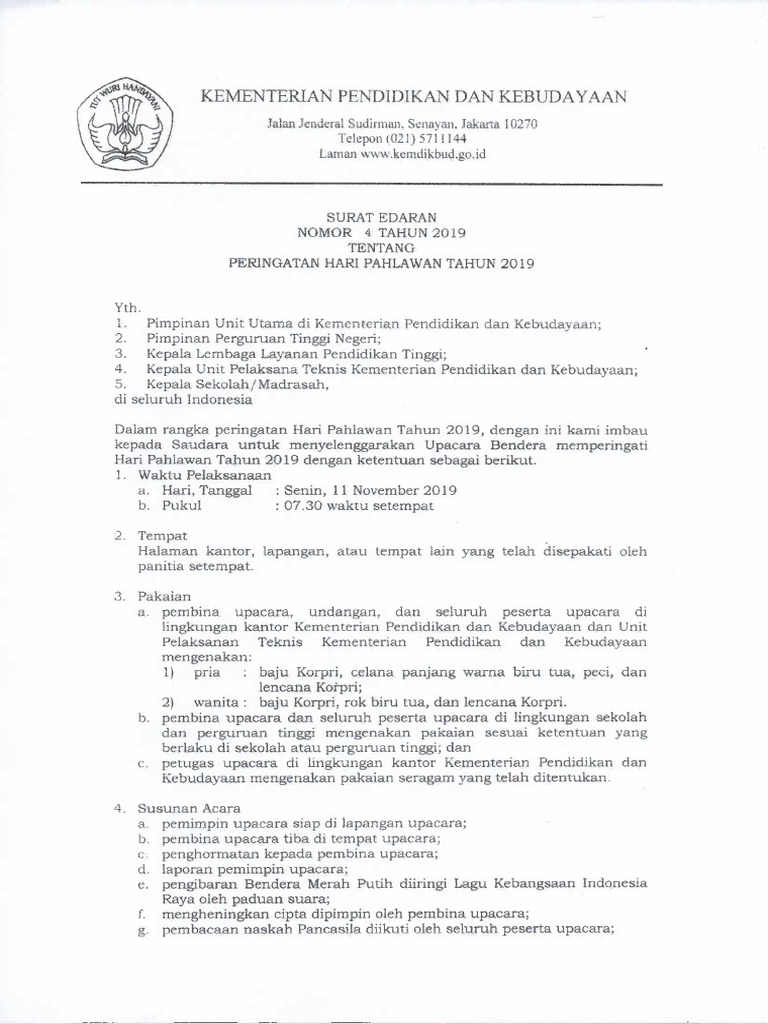 Https Www Kemdikbud Go Id Main Blog 2019 11 Surat Edaran Sesjen Kemendikbud Peringatan Hari Pahlawan Tahun 2019