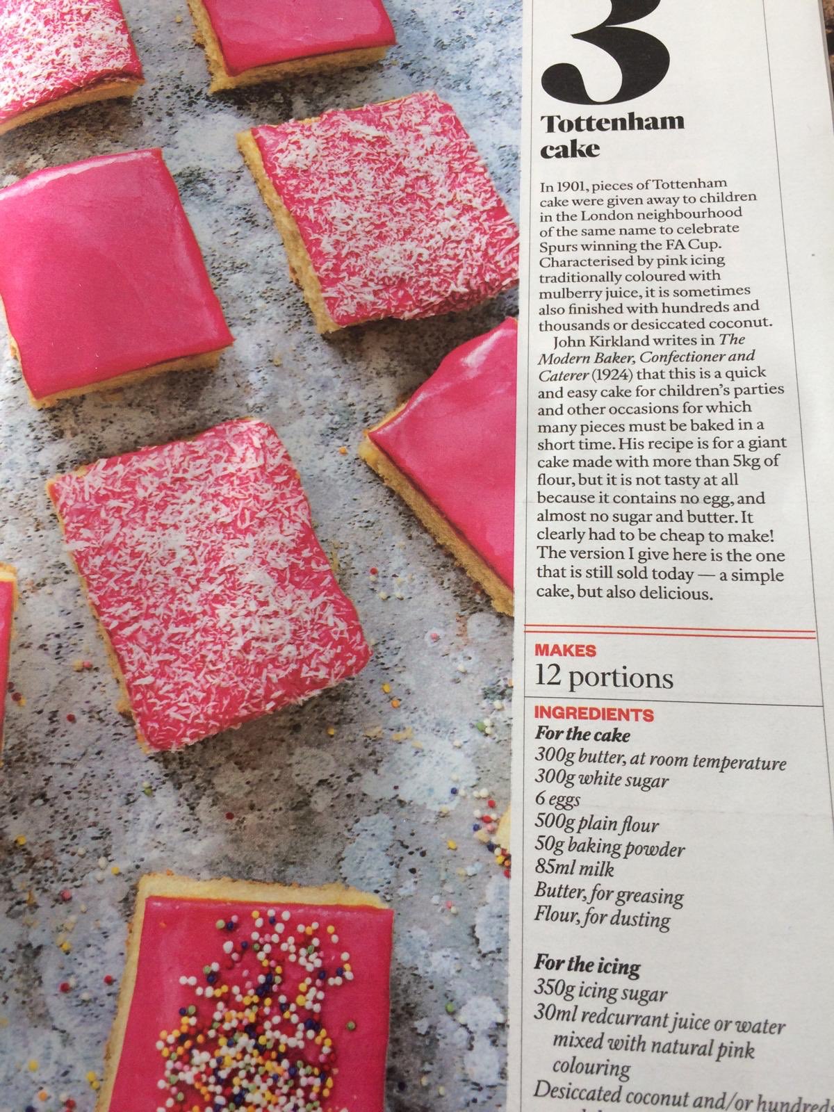 Tottenham cake is a classic english recipe. Try my lemon drizzle cake. Pre heat oven to 350o180oc. Tottenham cake is a sponge traybake cake originally baked by tottenham quakers and covered either in pink icing originally made from mulberries from the garden of the tottenham quaker house or jam often sprinkled with dessicated coconut then cut into squares.