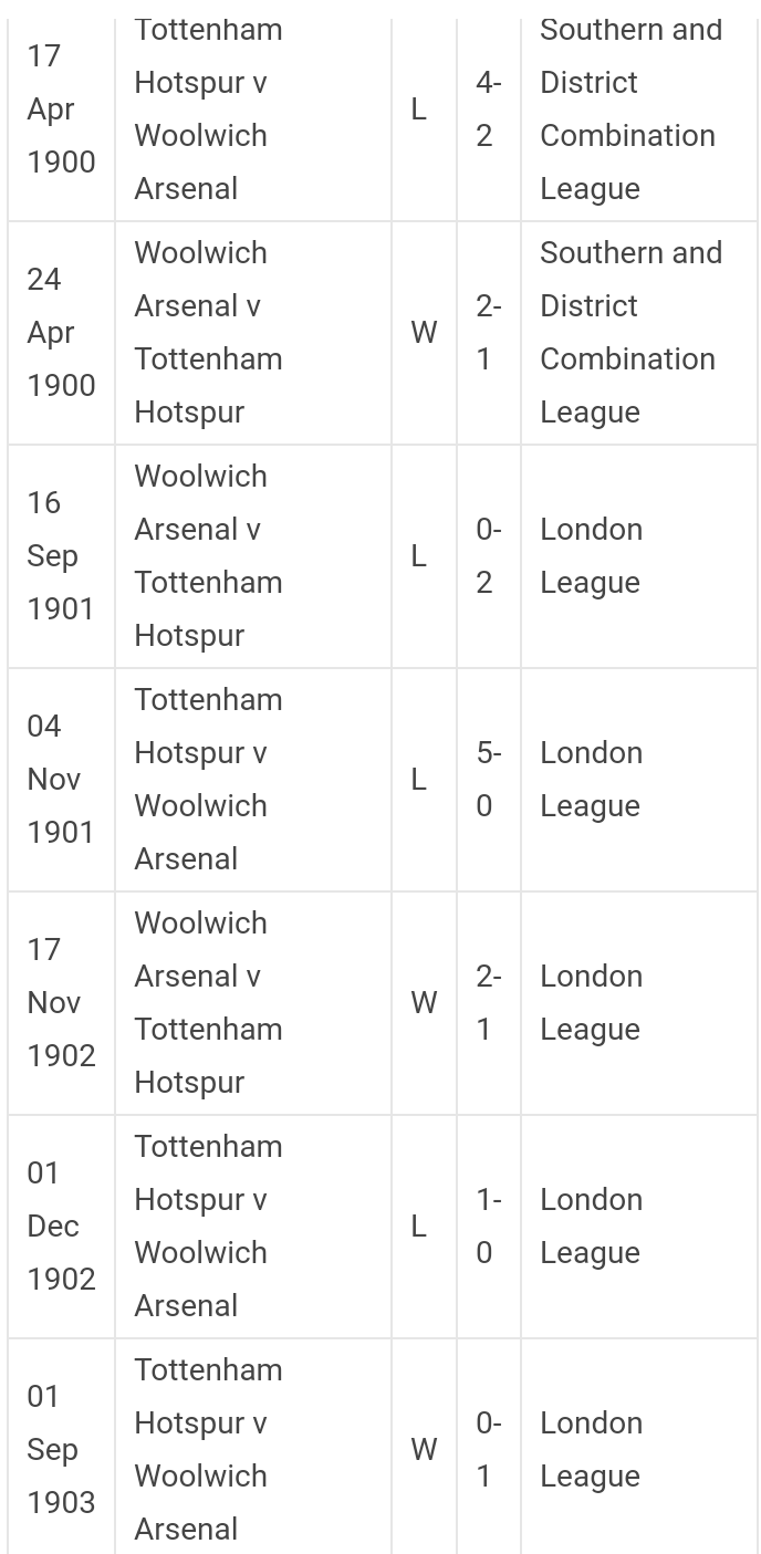 Tottenham Hotspur Results